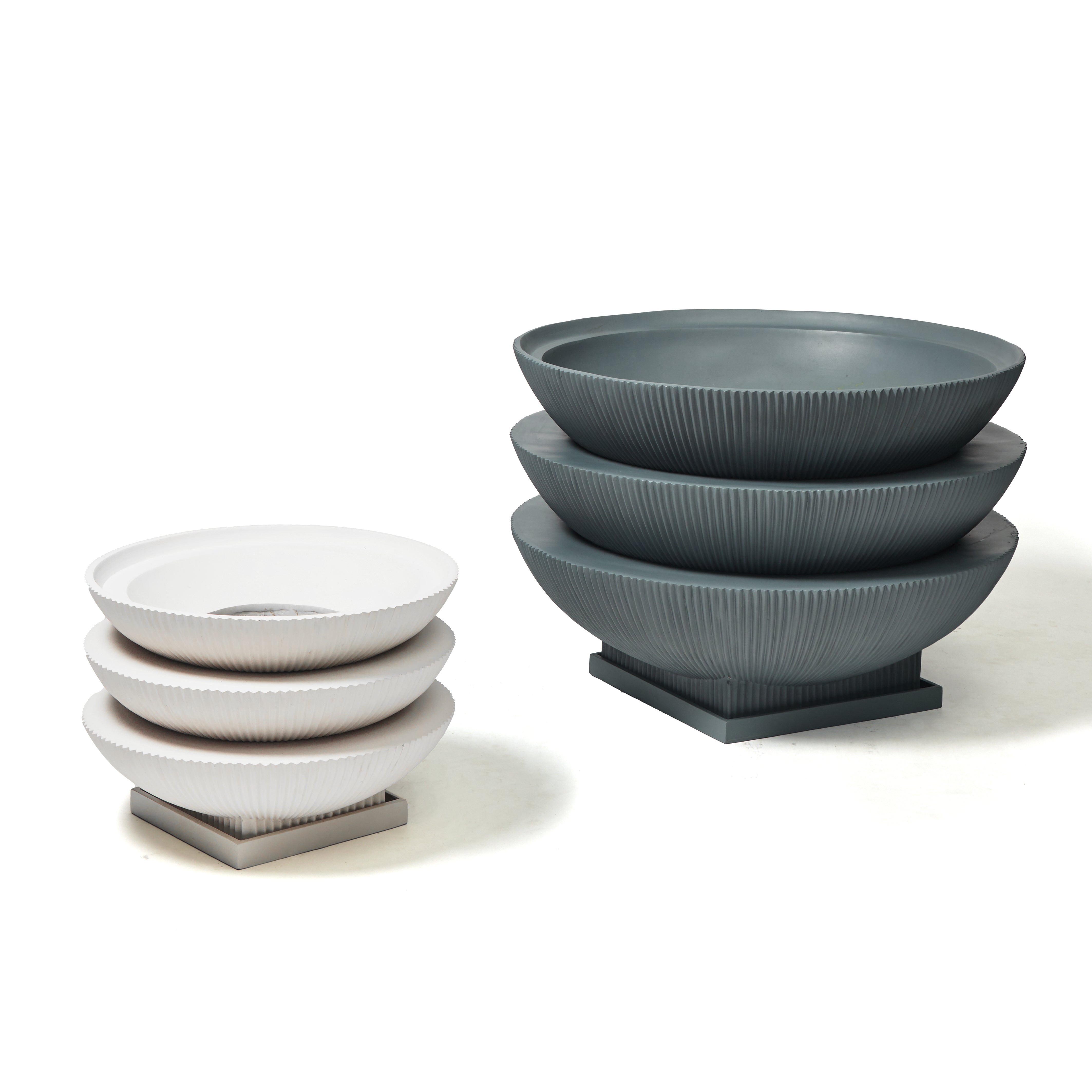 The Oversized Half Dome Stack is a spherical tiered stacked with fluted detail. All designs are hand crafted in Mexico and suitable for both indoor/outdoor use. Each planter contains drainage and comes with a matching fiberglass drainage tray. The collection comes in five colors and custom colors are available upon request.