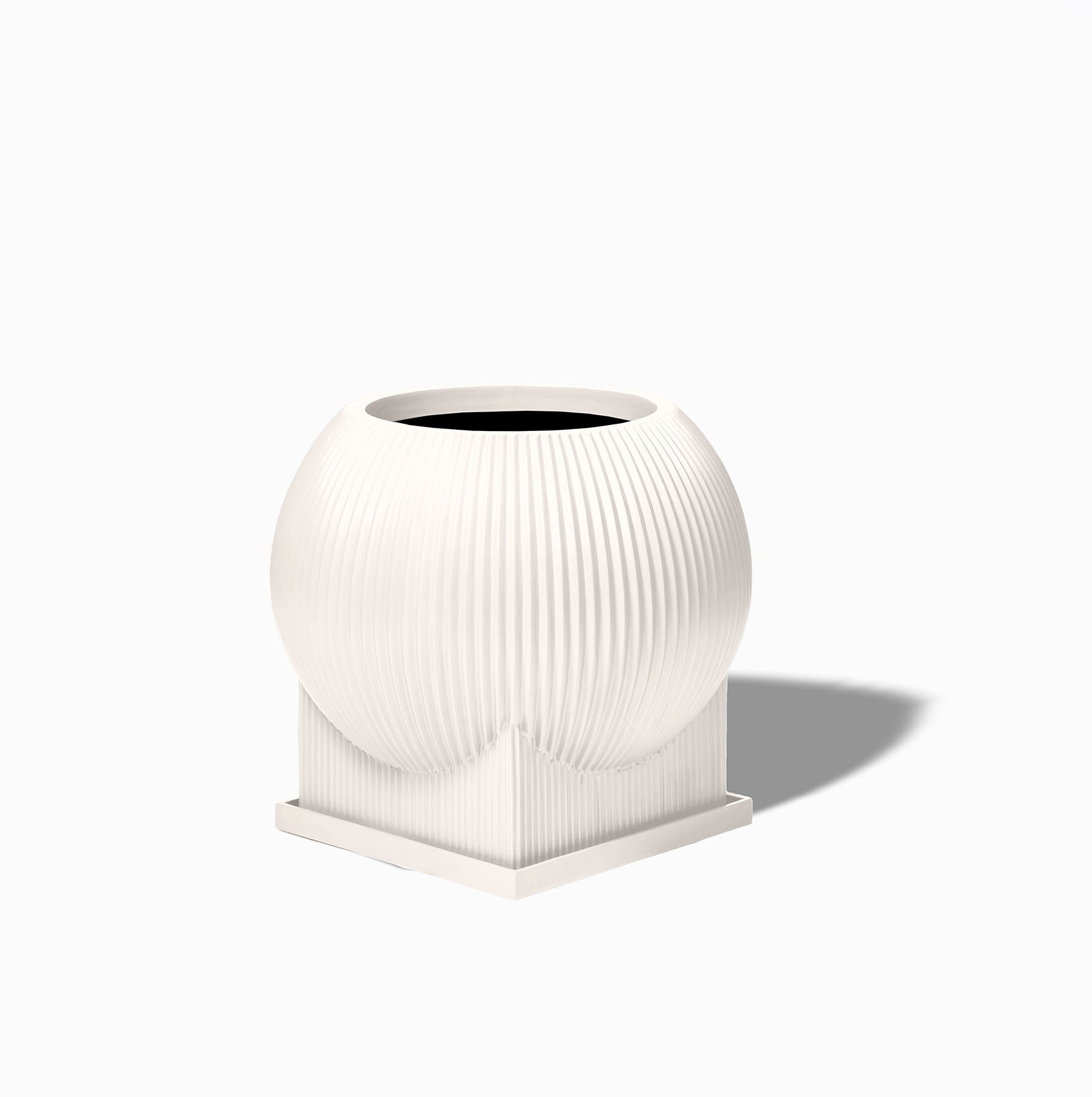 The Standard Flat Blob style is spherical in shape with fluted fiberglass detail. All designs are hand crafted in Mexico and suitable for both indoor/outdoor use. Each planter contains drainage and comes with a matching fiberglass drainage tray. The collection comes in five colors and custom colors are available upon request.