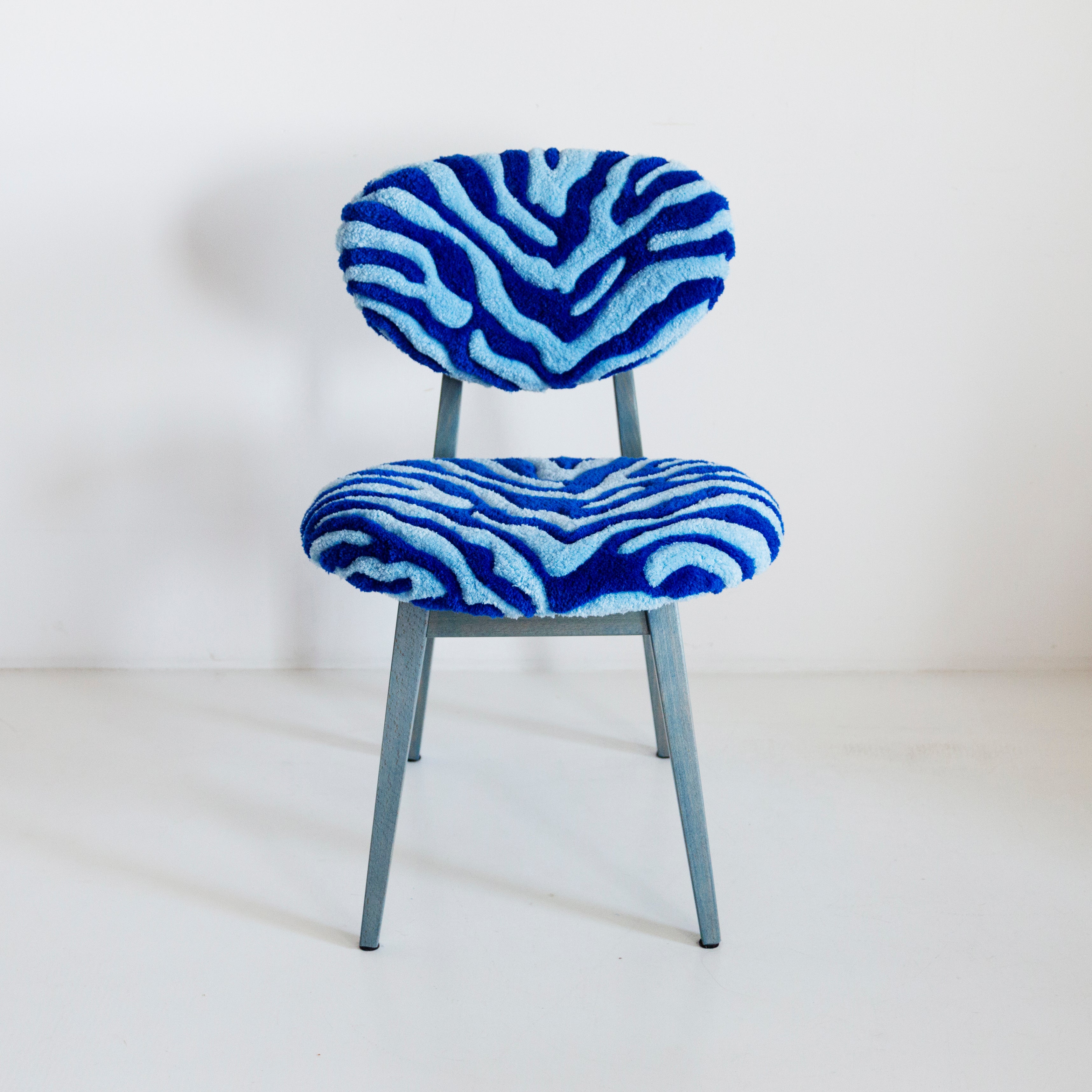 Mushroom Chair in Zebra Blue Wool by Vintola Studio