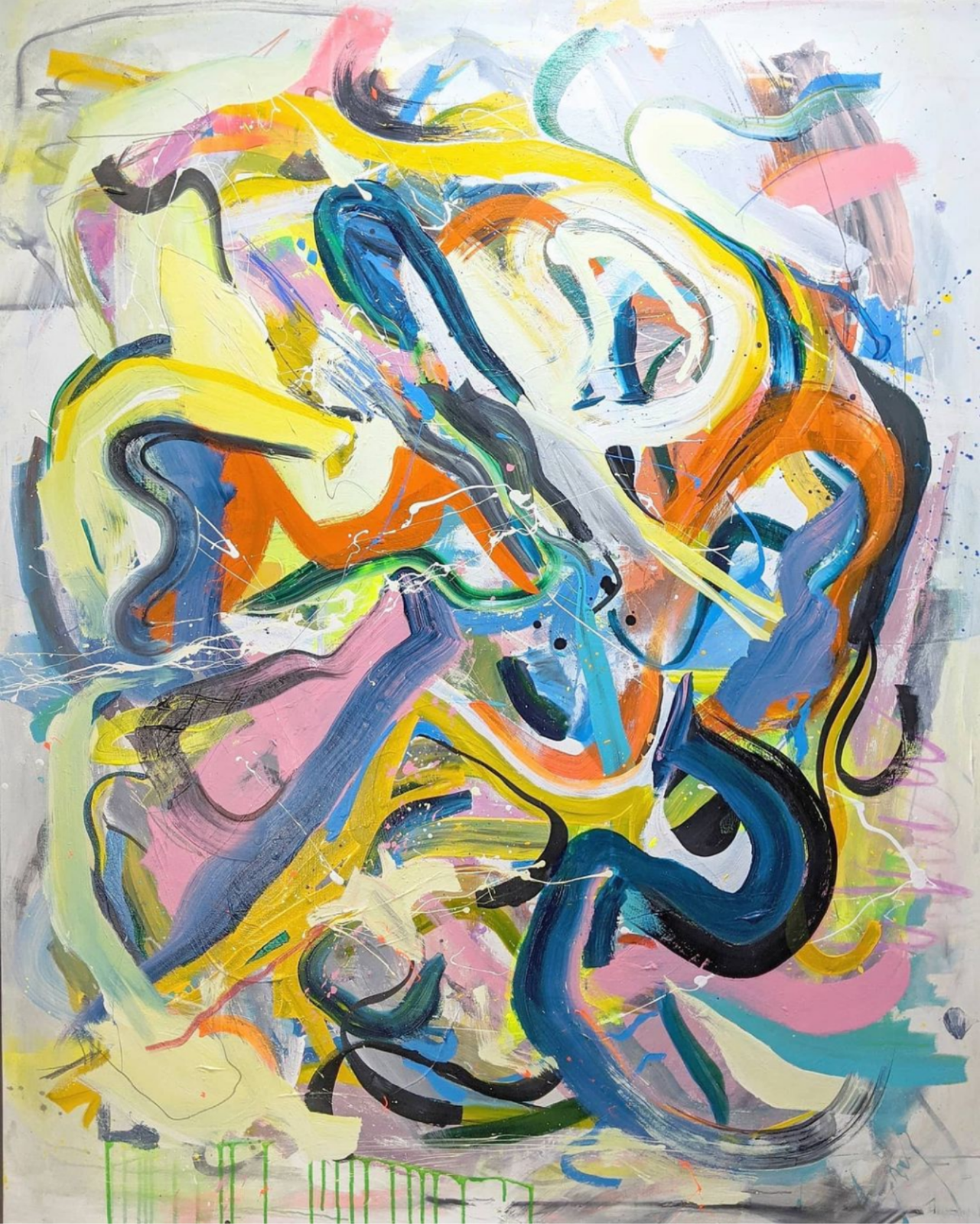 Mixed media abstract painting on canvas by NY-based artist Joseph Conrad-Ferm.