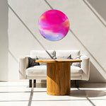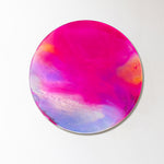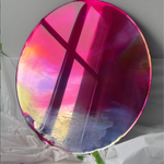 These functional art pieces build a color story through multiple layers of translucent tinted resin over a mirrored glass base. Throughout the day as the light changes, their vibrant hues shift in color and tone - kaleidoscopic portals offering new perspectives each time you view them. Courtney considers this her signature series and has been developing the technique for over two years.