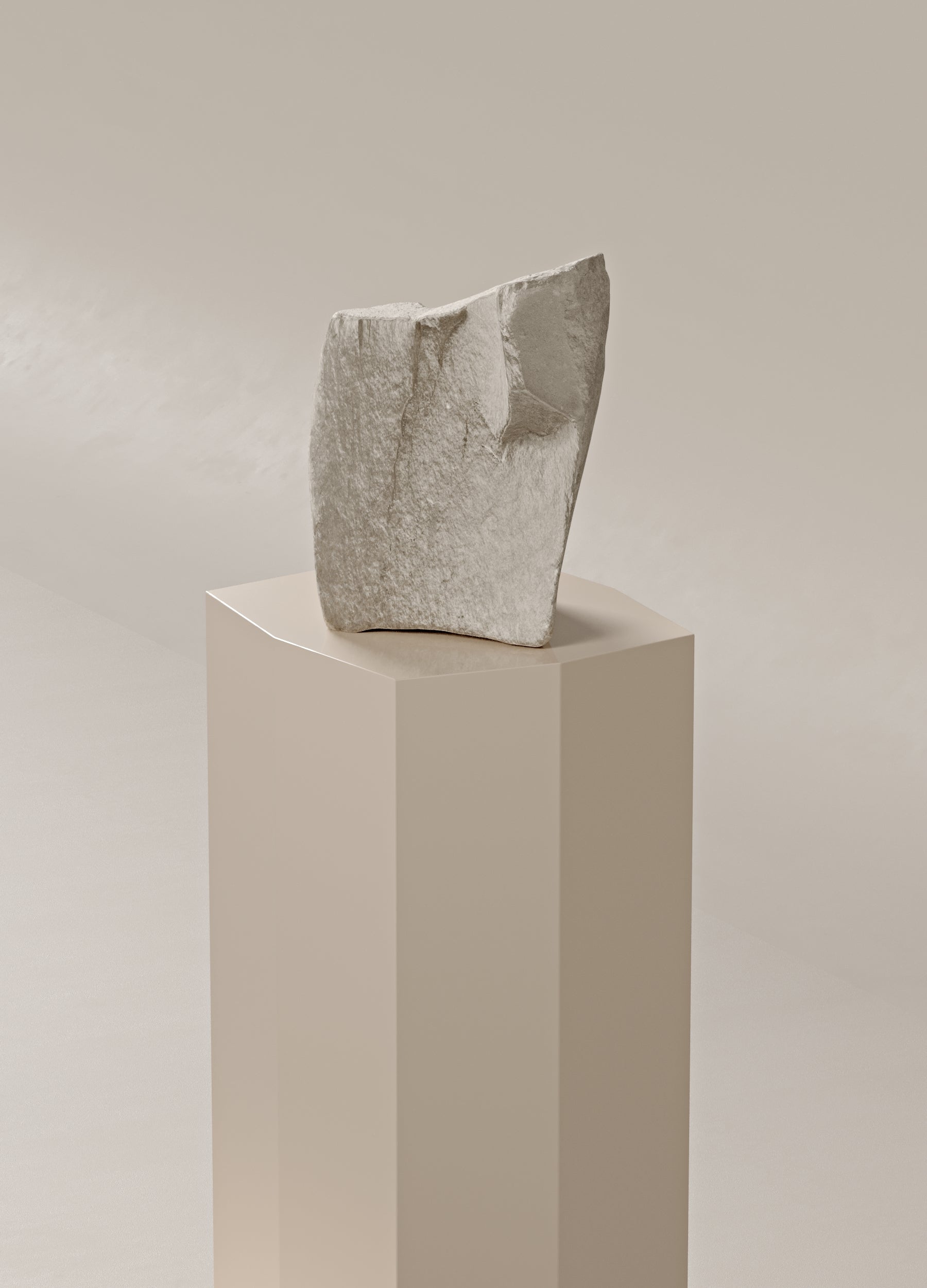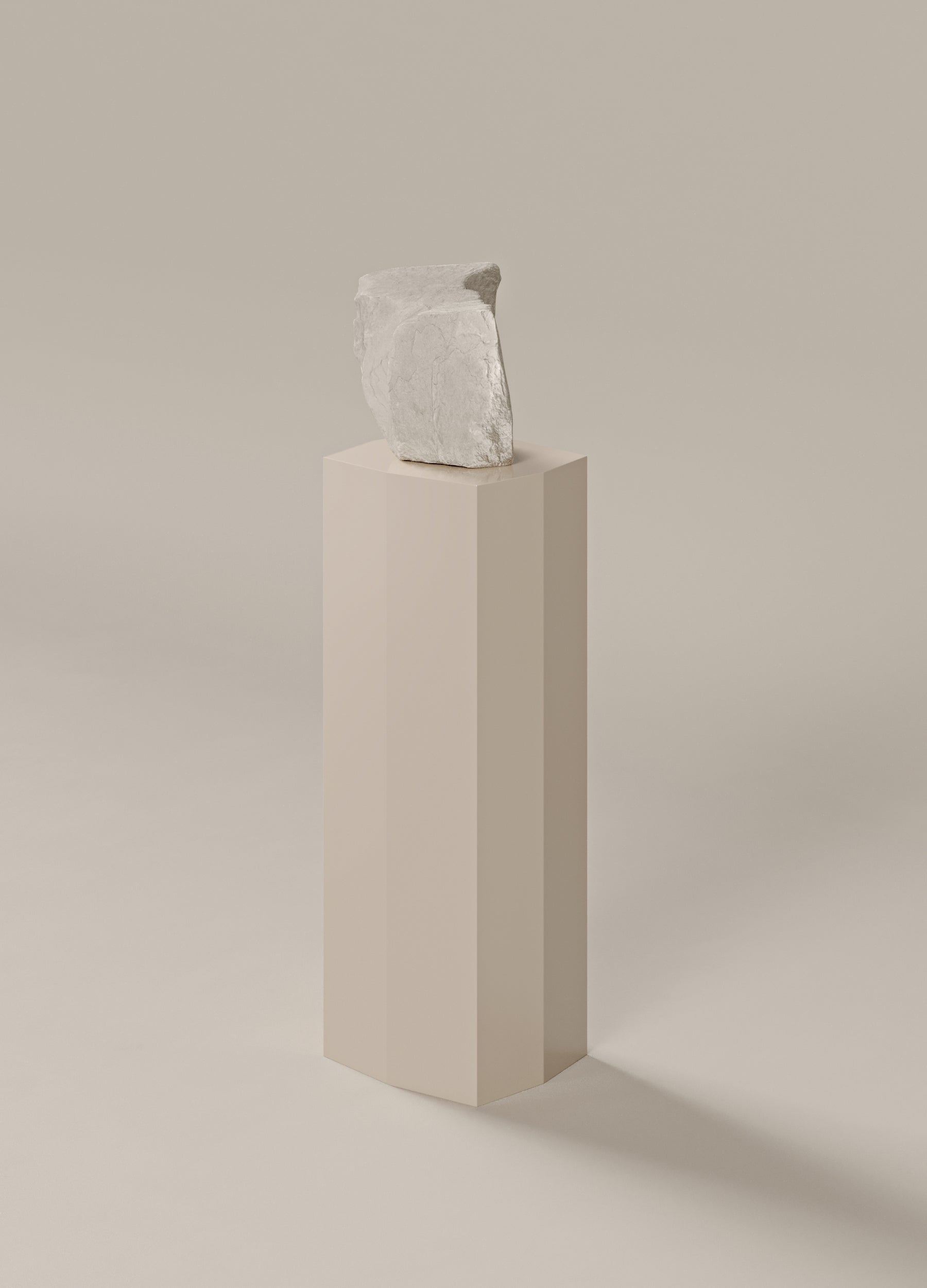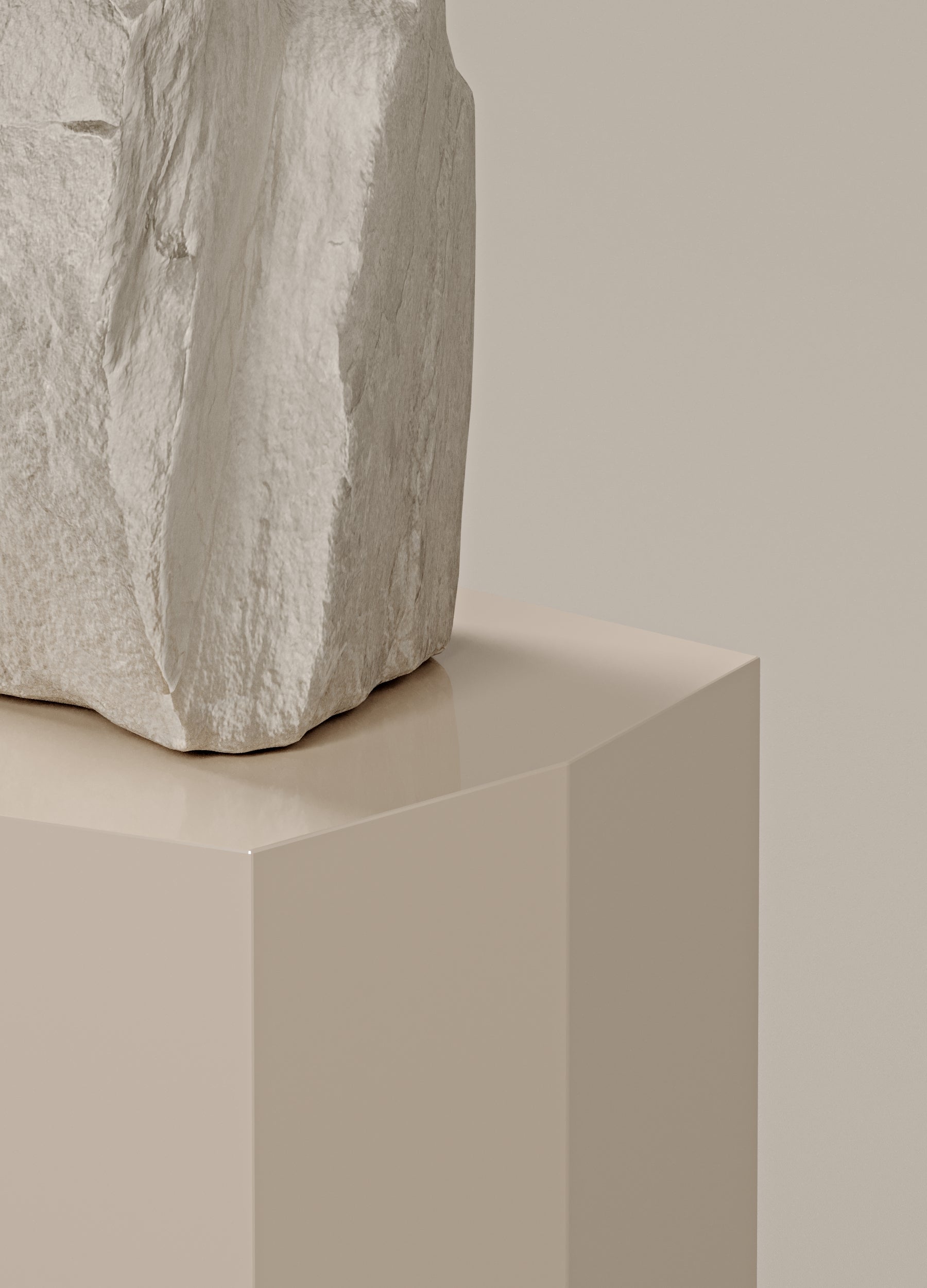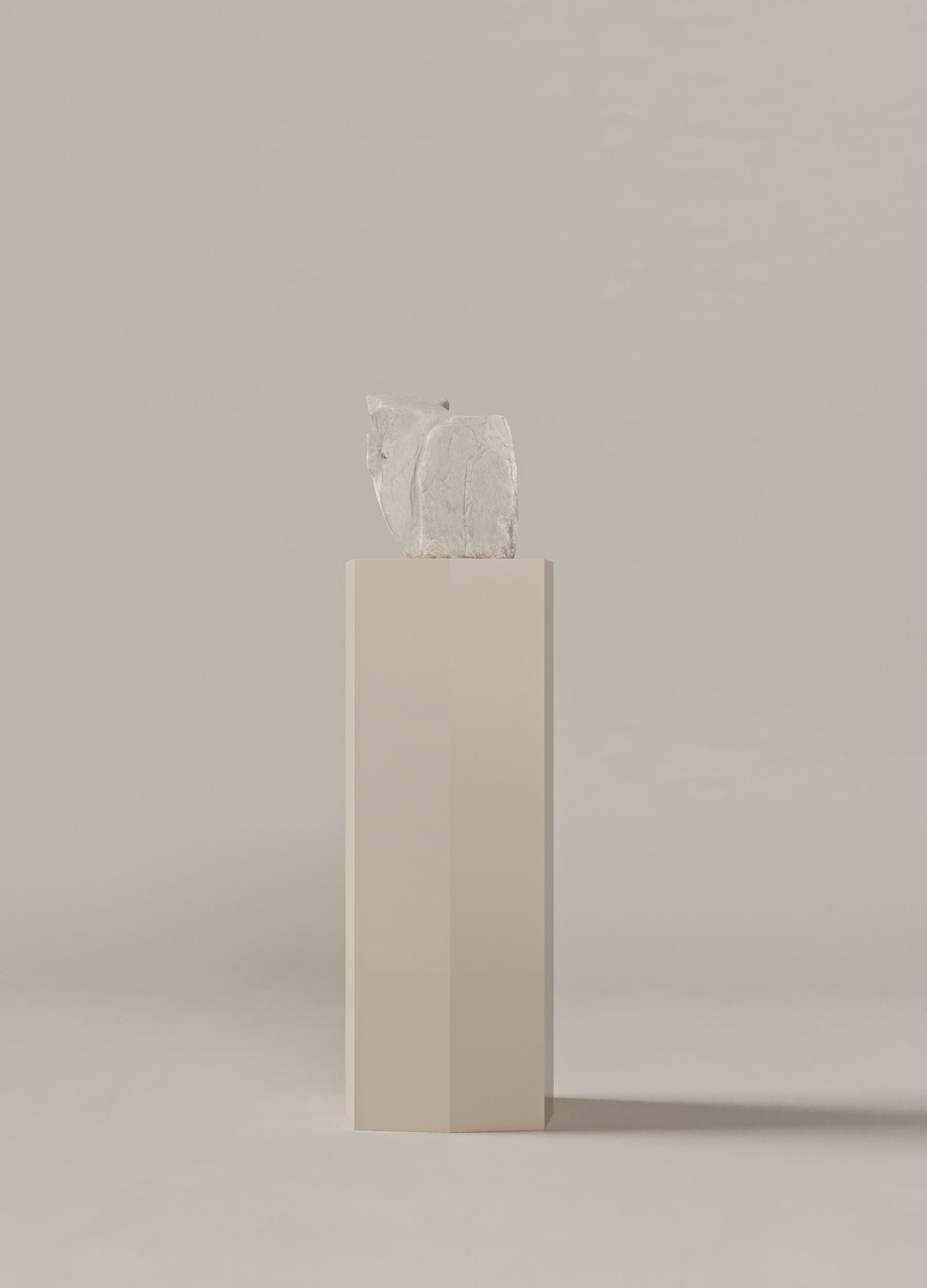 A refined pedestal that merges bold geometry with understated elegance. Its Ivory lacquered MDF surface offers a sleek, reflective finish, creating a striking interplay of light and shadow. With its sculptural silhouette and architectural presence, this piece functions both as a display platform and as a collectible design object.