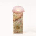 Combining Murano glass and onyx, Lucia’s Carrara-made lamps explore the themes of material permanence, reflection, and presence.