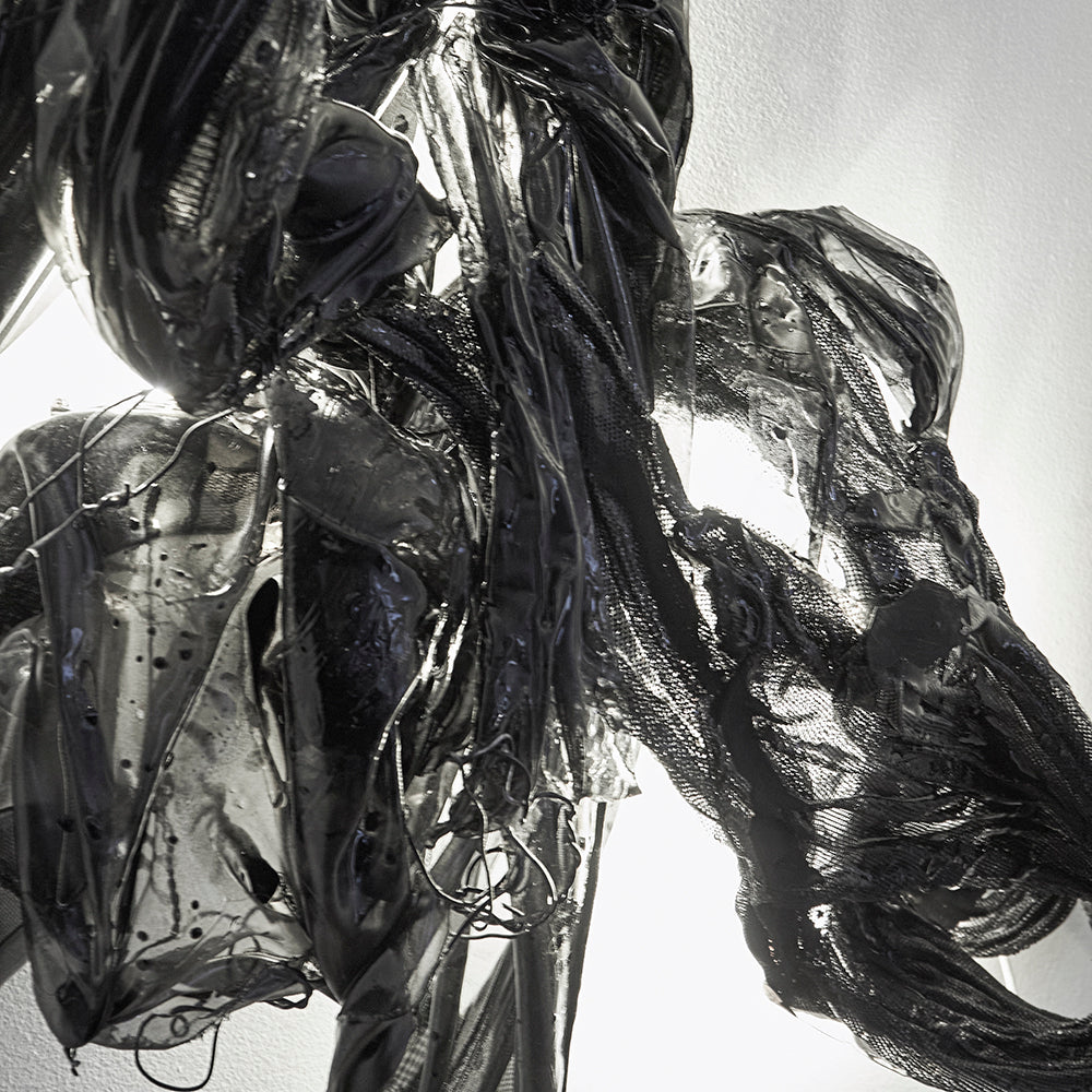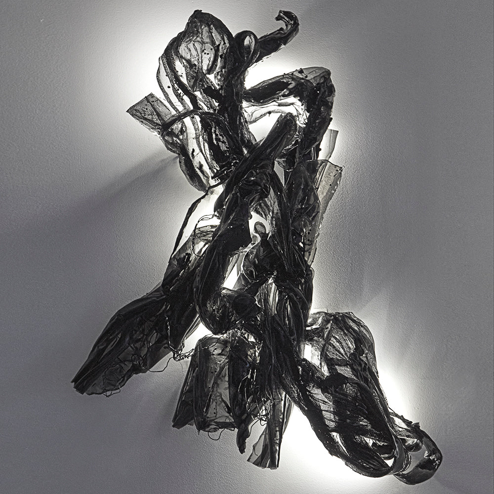 Mesh, epoxy, fabric, acrylic paint, LED lights
